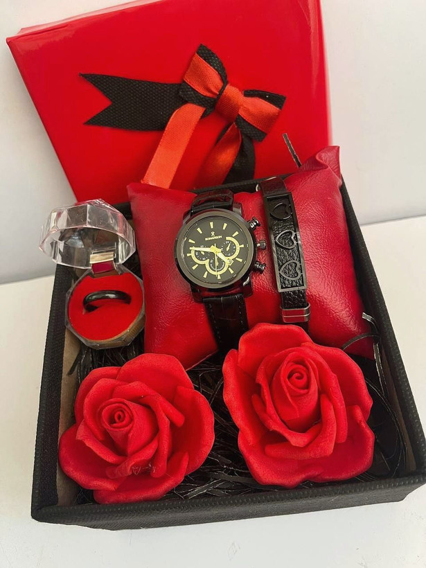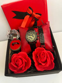 باکس هدیه زنانه روز زن کادوی دخترانه ساعت اسپرت مشکی دستبند ست و حلقه استیل کادو تولد ولنتاین باکس اقتصادی ارسال رایگان