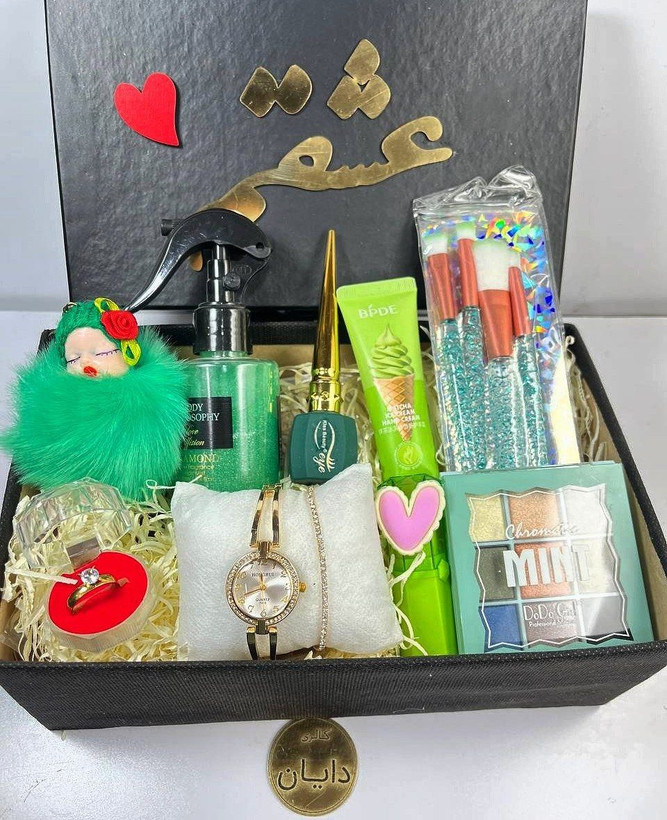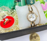 باکس هدیه اقتصادی زنانه ساعتظریف دستبند فول نگین آرایشی کاربردی عاشقانه مناسب نامزد سالگرد تولد ارسال رایگان