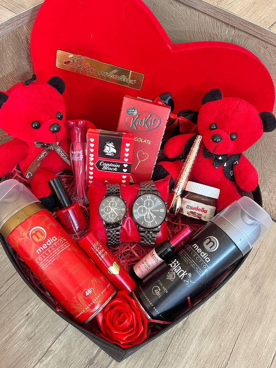 باکس بزرگ ولنتاین هدیه قلب بزرگ شب عشق زنانه ساعت مشکی ست خرس قرمز دخترونه ست زنانه مردانه شیک و خاص باکس قلبی