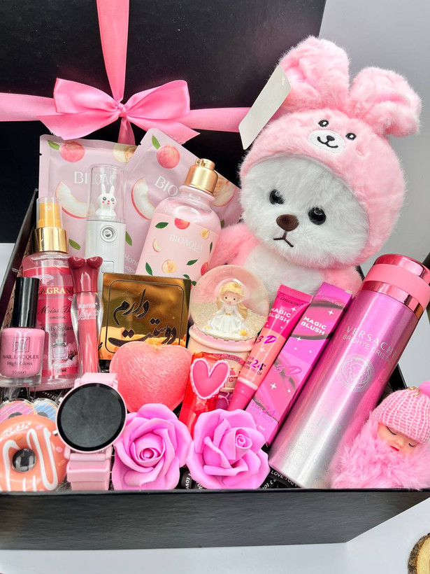 باکس شیک زنانه کامل عروسک خرس ساعت صورتی زیبا کادو تولد ارسال رایگان سورپرایز