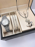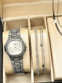 ست ساعت شیک زنانه نگین دار گردنبند ۲ لاین استیل ساعت مجلسی زیبا هدیه کادو روزمعلم