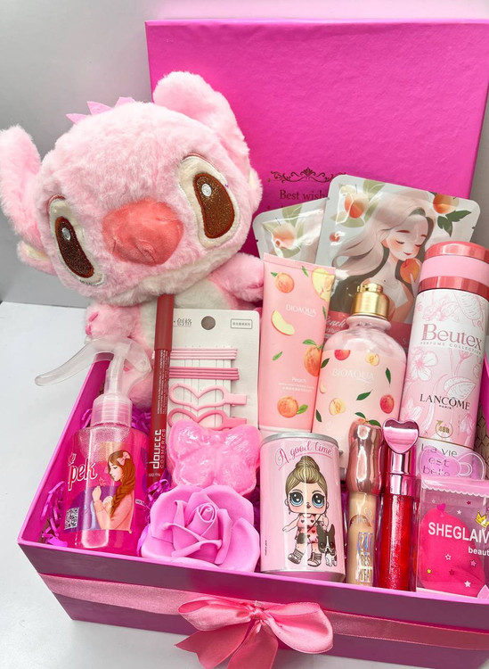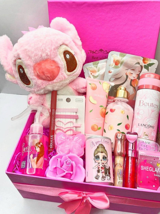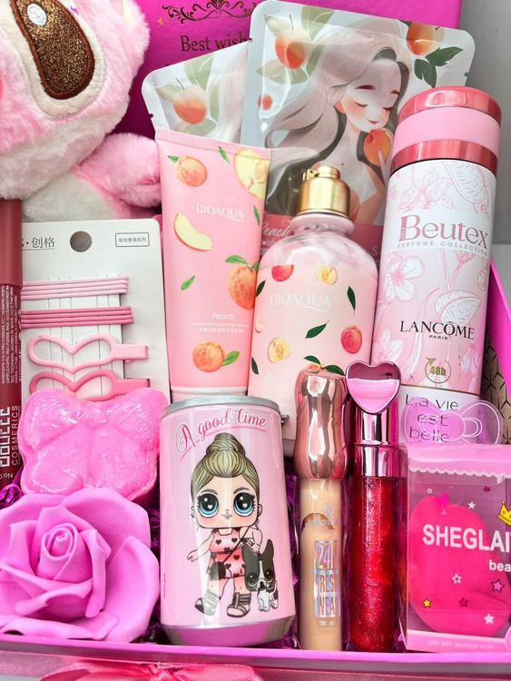 باکس هدیه لوکس و لاکچری بزرگ جذاب و خاص کادوی زنانه دخترانه لوکس و خوشگل عروسک استیج خارجی لوازم ارایشی باکس لوسیون بدن پرفروش