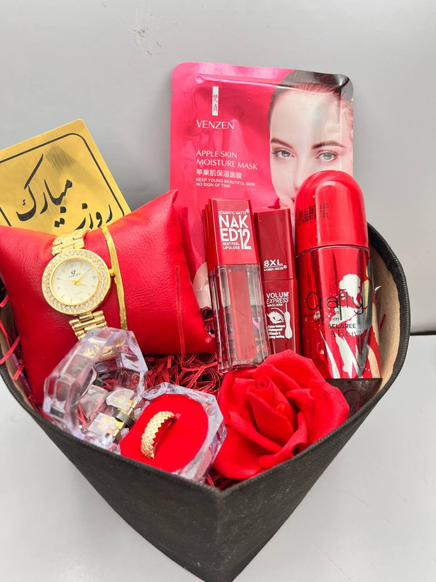 باکس هدیه پرفروش زنانه کادوی جذاب یلدا ولنتاین و روززن ارسال رایگان ارایشی ساعت نگین دار طلایی زنانه
