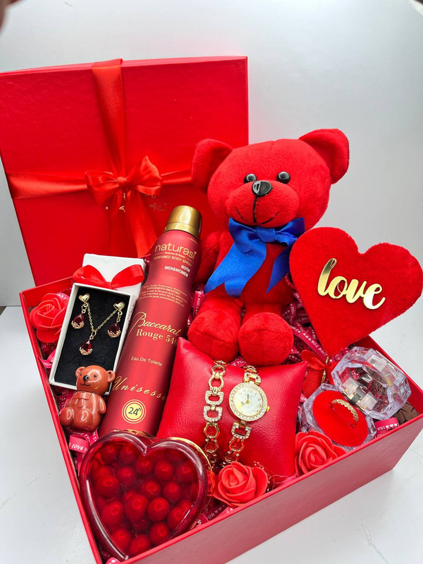 باکس پر فروش زنانه مناسب ولنتاین هدیه شیک ولنتاین ارسال رایگان نیمست زیبا اسپری شکلات خرس قرمز