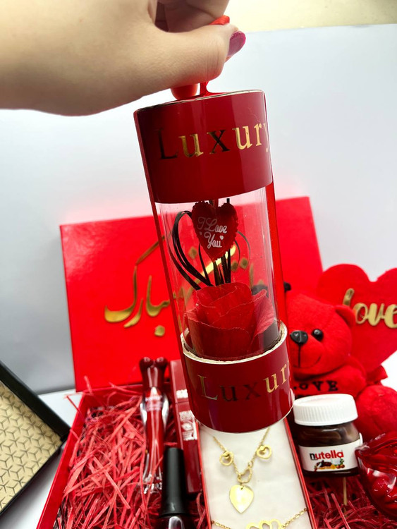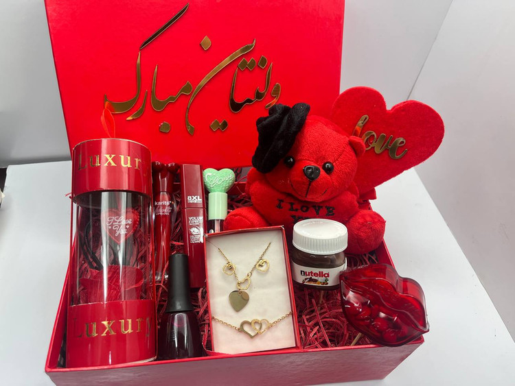 باکس زیبا و خاص اقتصادی ولنتاین مبارک خرس نیم ست استیل قلبی شکلات نوتلا لوازم آرایش ارسال رایگان