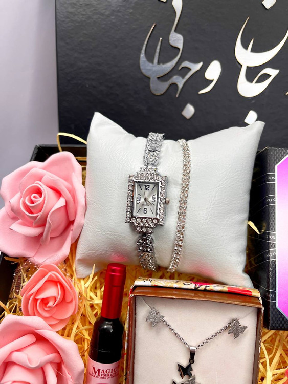 پک هدیه زنانه ست ادکلن اسپری ویکتوریا سکرت ساعت ظریف نگین دار نیمست استیل ارسال رایگان روز زن هدیه تولد