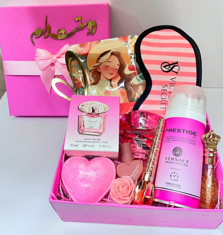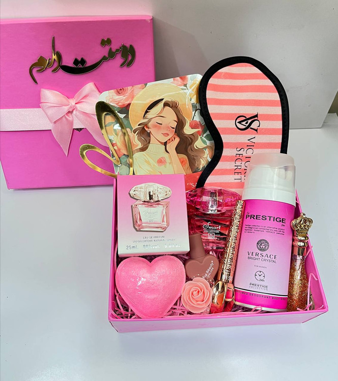 باکس هدیه خوشگل دوستت دارم صورتی زنانه ادکلن اسپری برند ورساچه هدیه تولد کادوی عید ارسال رایگان