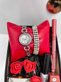 باکسهدیه اقتصادی زنانه ساعت ظریف نگین دار نقرهای بالم لب رژ لب ارسال رایگان