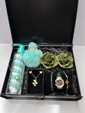 سالگرد ازدواج . پک هدیه سبز زنانه یا دخترانه. ساعت بندی چرمی سبز نگین دار جذاب
