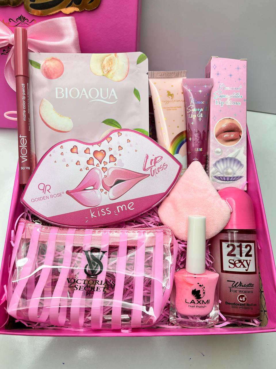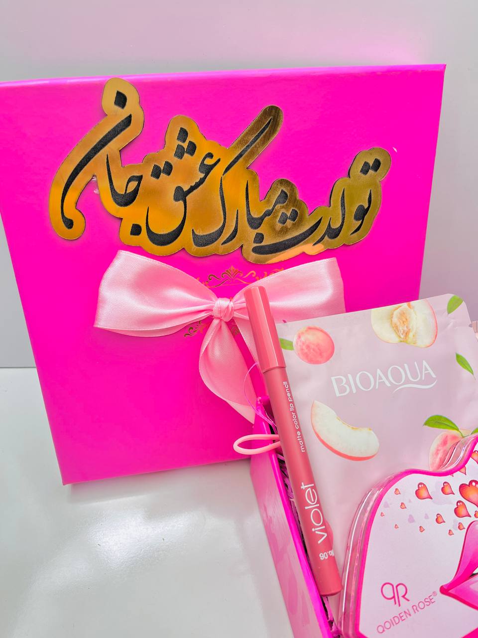 باکس هدیه صورتی خاص و جذاب دخترانه زنانه. پک تینت لب ۵ تایی طرح لب