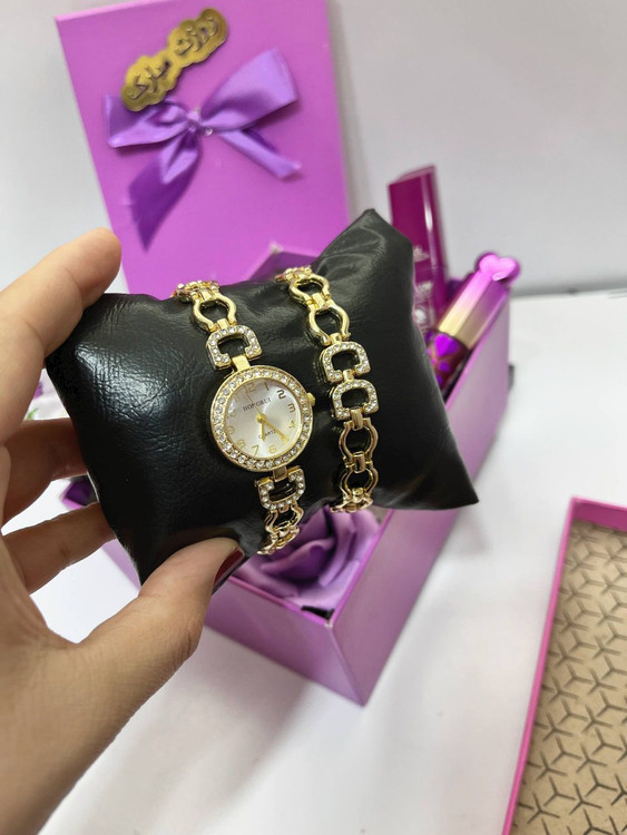 ست ساعت و دستبند نگین دار ظریف زنانه