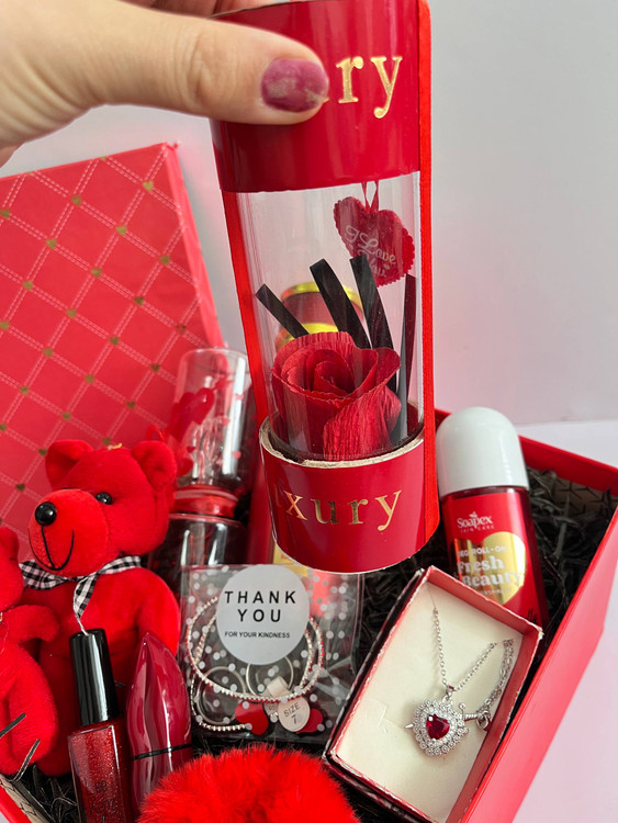 باکس هدیه خوشگل و گوکولی ولنتاین اسپری باکارات رژ رایحه عالی