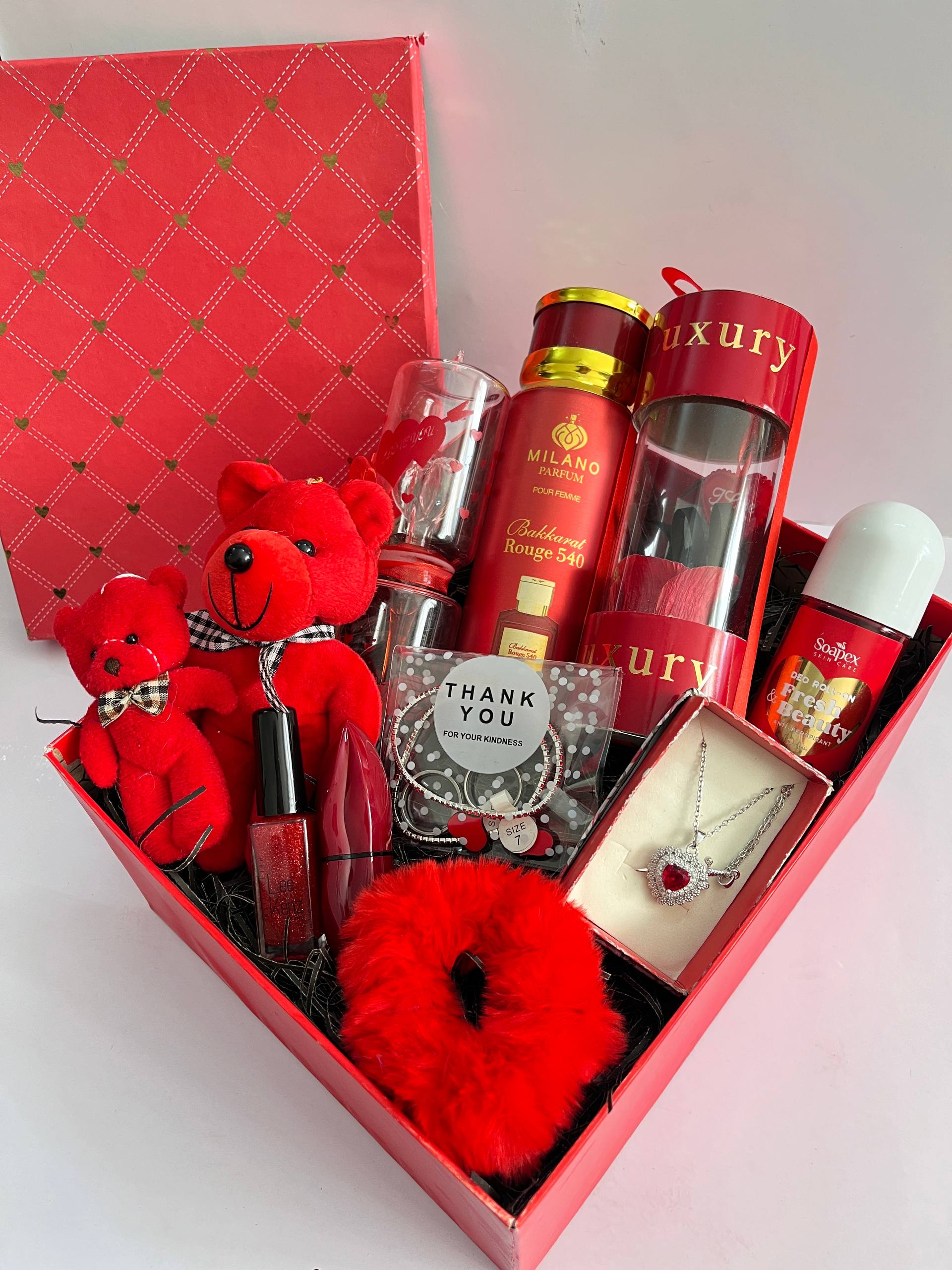 باکس هدیه خوشگل و گوکولی ولنتاین اسپری باکارات رژ رایحه عالی